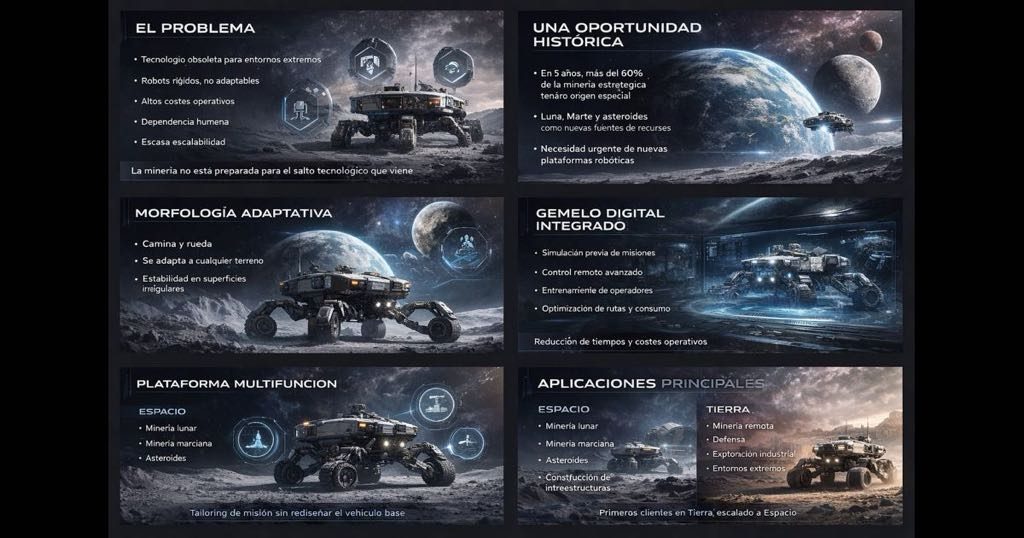 Syngular Space Technology es un proyecto único que integra robótica, inteligencia artificial y gemelos digitales para testar y validar tecnologías espaciales. Nuestra misión es acelerar el desarrollo de soluciones innovadoras que soporten la minería espacial y misiones análogas en colaboración con múltiples sectores industriales.